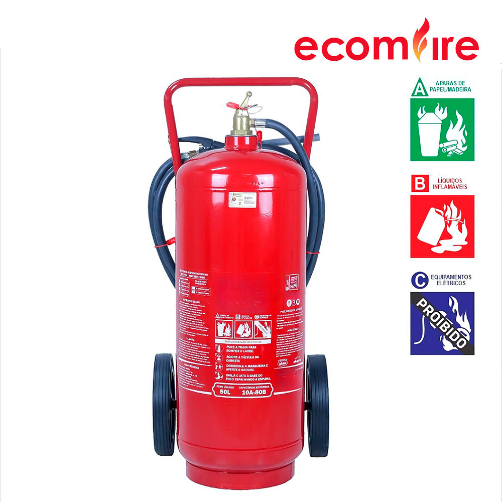 O extintor sobre rodas de espuma mecânica é um equipamento essencial para combater princípios de incêndio em ambientes comerciais e industriais. Seu funcionamento se baseia na ação à base de liquido gerador de espuma e são indicados no combate a incêndio de classe A e B causados por papel, borracha, madeira e tecidos (A) e líquidos inflamáveis (B).