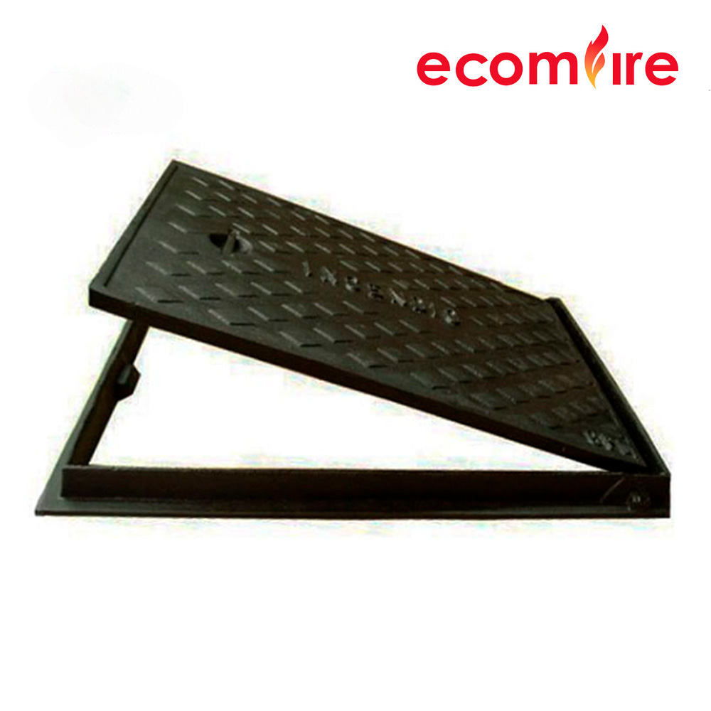 Tampa de Fero Fundido 60x40 cm, com inscrição "incêndio", para registro de recalque. Recomendado apenas para passagem de pedestres.